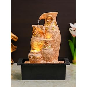 60% OffMaterial: Polyresin | Color: Sand| Size: 40 x 29.5 x 22 CM | Weight: 2095 Gram | Type: Indoor Table Top Fountain Flowing water symbolizes prosperity and wealth, according to Feng Shui experts. So, not only does an indoor water fountain offer a focal point in your decor, it also promotes good fortune ! Included Components: 1 Showpiece, 1 Water flow Speed Adjustable Pump with Yellow LED Light, 1 Water Tub And 1 User Manual Precautions: We Recommend use of Distilled Water and Water should be change... read more