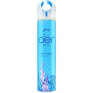42% OffContains: 1 unit of Godrej aer spray - Room freshener spray (220 ml). Variant - Cool Aqua REFRESHING FRAGRANCE: Inspired by the smooth sea breeze flowing over coral reefs in Mauritius CONVENIENT TO USE: Easy push and spray mechanism designed for convenience LONG-LASTING FRAGRANCE: Makes every surface smell amazing for long USE ANYWHERE: Bedroom, Living Room, Workspaces and Public Spaces ELEGANTLY DESIGNED: Exquisitely designed room freshener to adorn the living spaces Available in 6 designer fragrances - Petal Crush Pink, Fresh Lush Green, Cool Aqua, Misty Morning Meadows, Violet Valley Bloom and Musk After Smoke