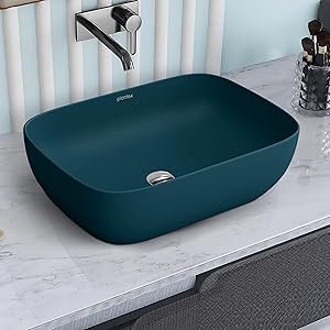 37% OffPlantex Wash Basin for Bathroom/Ceramic Basin/Rectangle Tabletop Basin/Hand Washbasin for Home/Restaurant - (18 x 13 x 5 inch -Pine Blue)