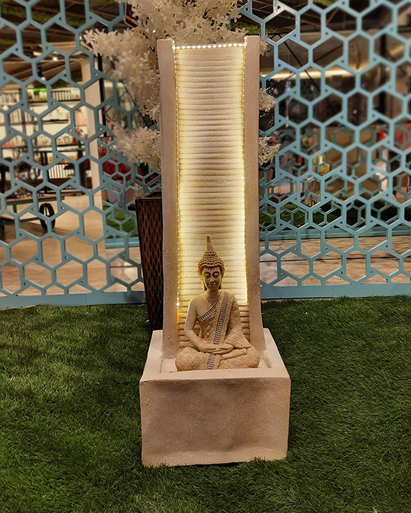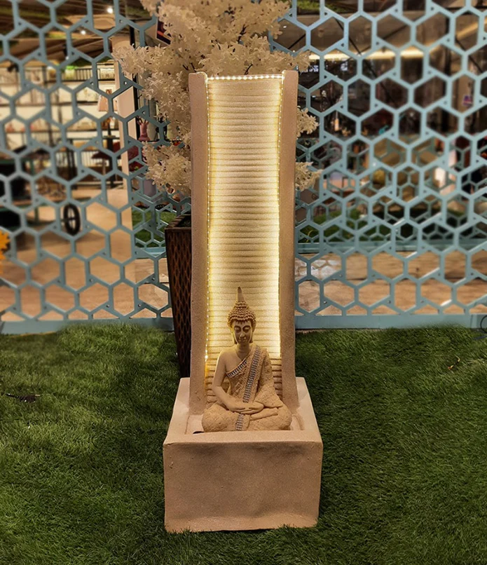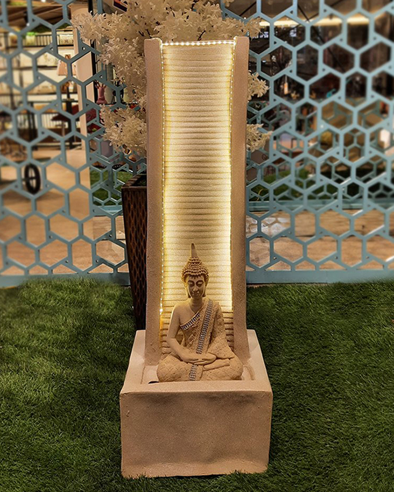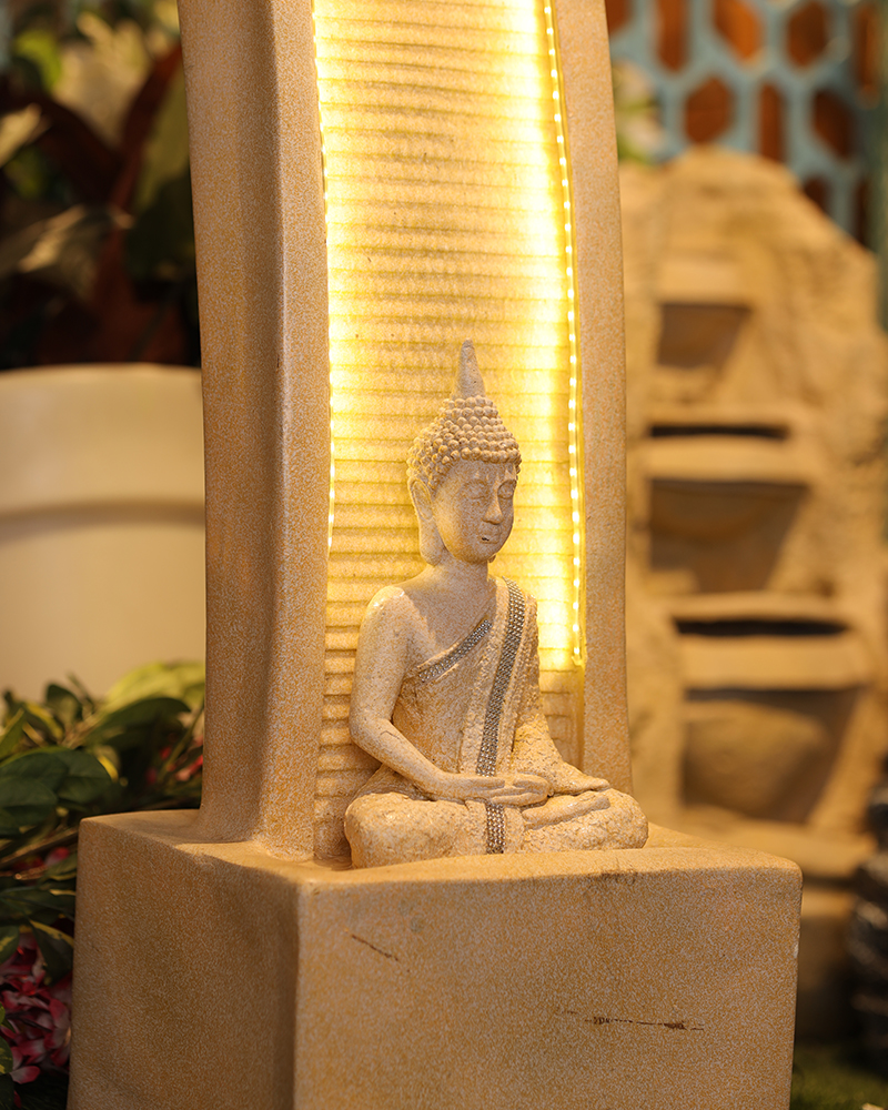 Shawshank Water Fountain Cream Sleek Garden Buddha Water Fountain For Home Decor With Light & Water Pump