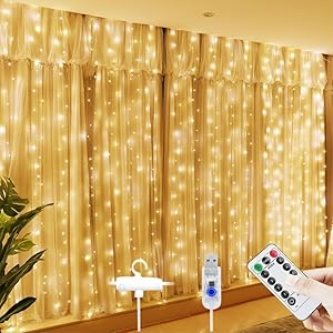 75% OffFLYNGO Fairy Curtain String Lights for Decoration, Warm White USB Powered 300 LED Lights with 8 Flashing Modes, Lights for Diwali, Christmas, Wedding, Party, Home (Fairy Curtain Warm White)