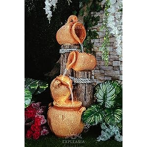 Expleasia, Exuberant & Luxury Decor Expleasia Wood Stacked Natural Earthen Pot Water Fountain|Home & Garden Decor Water Fountain, Orange & Brown